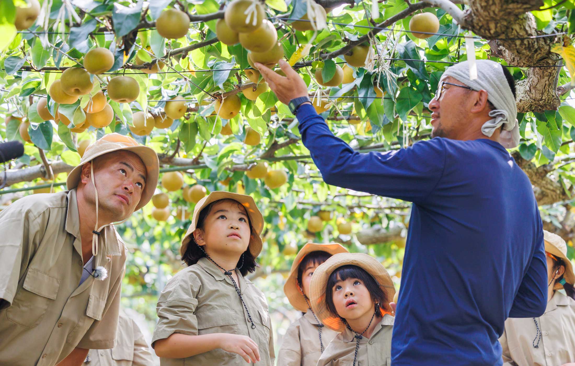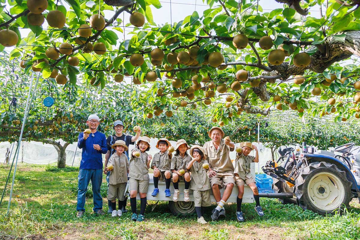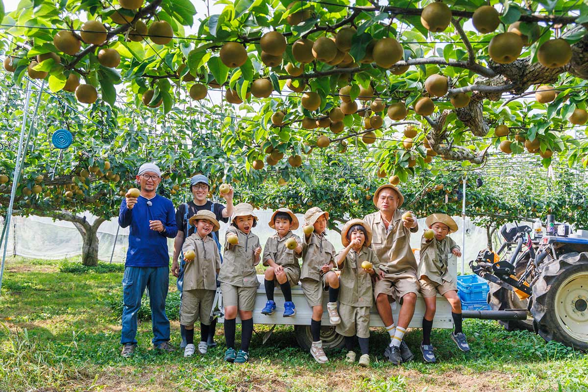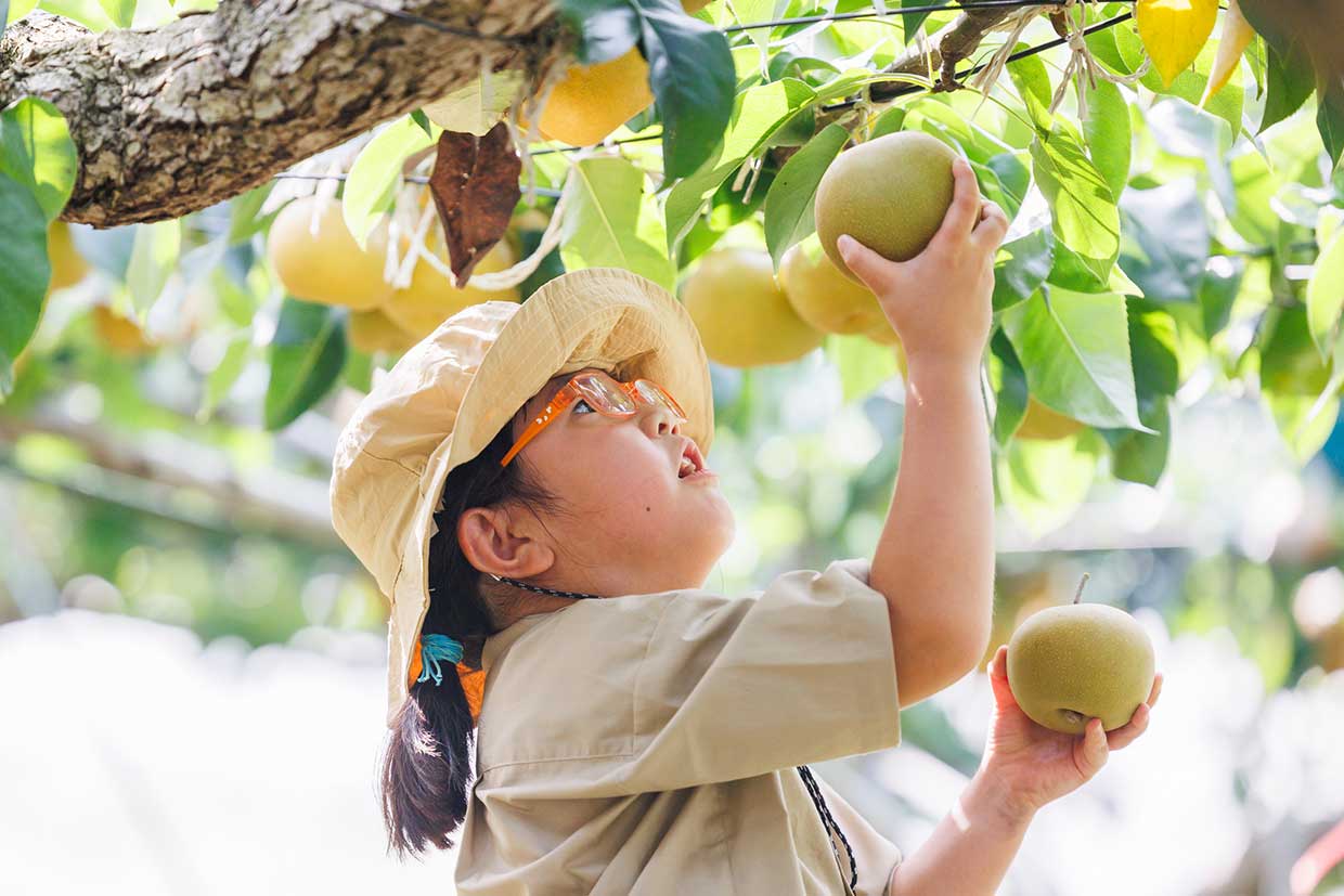 農家さんの丁寧な指導のもと、もぎたての梨をその場で味わう体験は格別!
