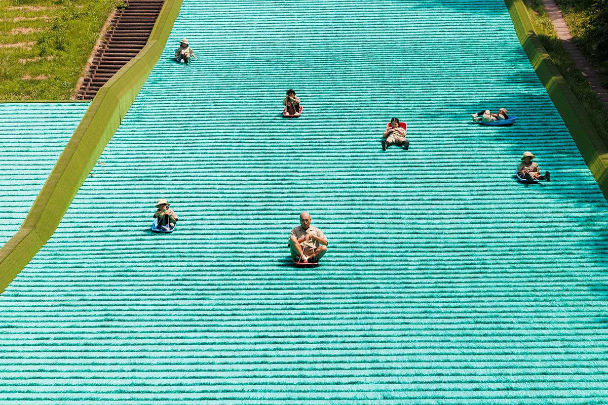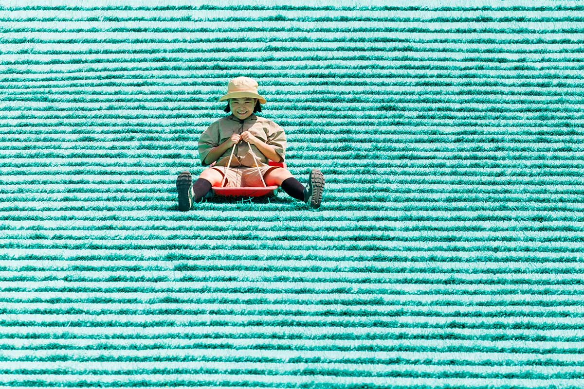スリル満点人工芝滑り台