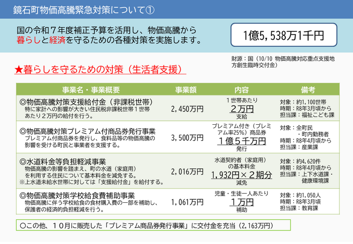 令和7年度国補正予算の成立を受け、国の交付金を活用した、物価高騰から暮らしと経済を守るための各種対策を実施します。