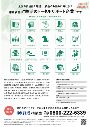 町では、終活に関する業務について、株式会社鎌倉新書と協定を結んでおります。