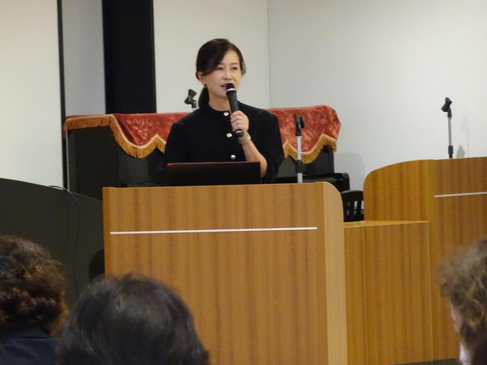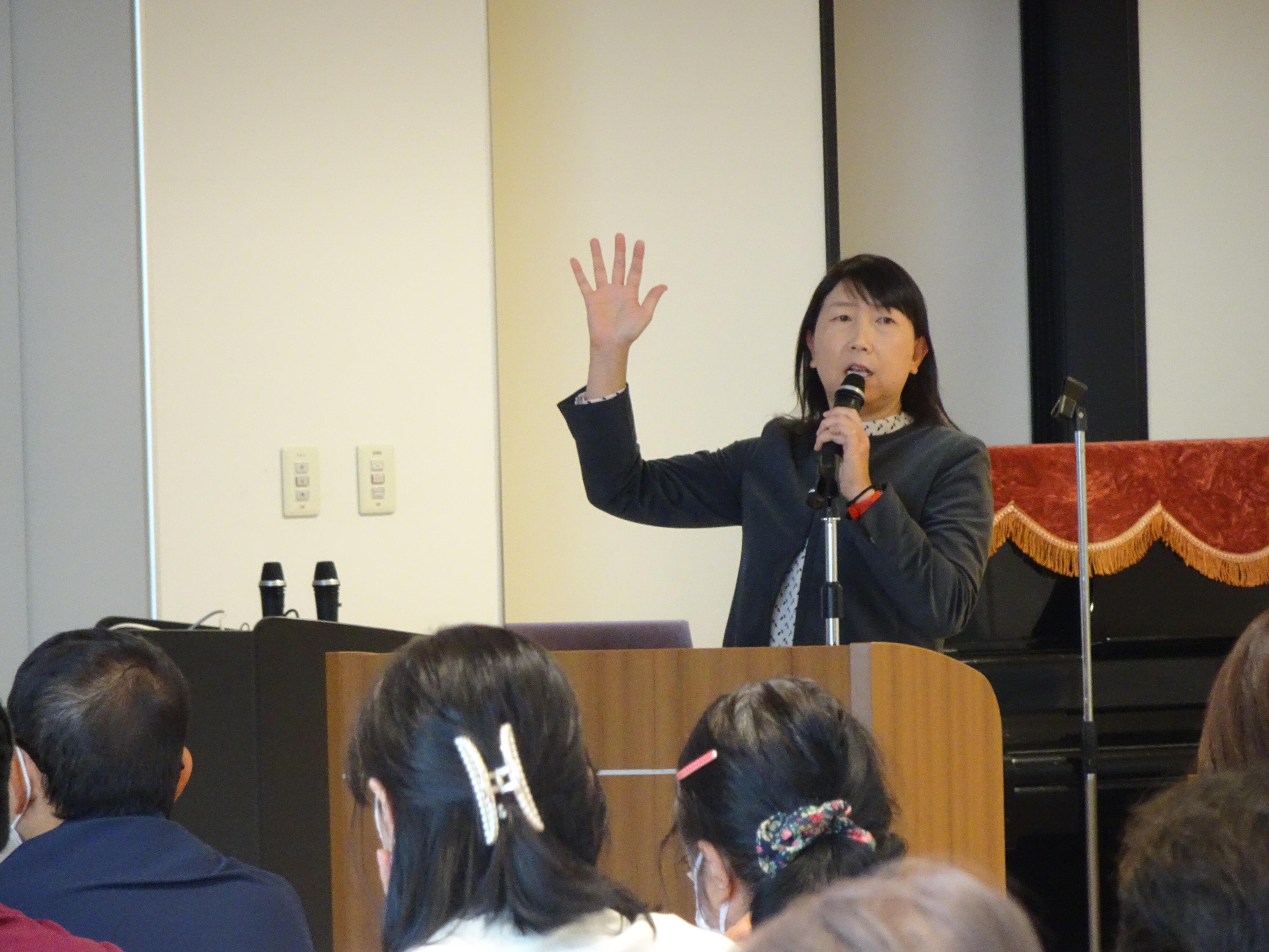 第2部では、関東学院大学 渡邊元美 客員教授より、「日常に取り入れる食事の工夫」をテーマに、食事の栄養素のバランスや糖質の種類・選び方、栄養を手軽にとれるおにぎりレシピの紹介や栄養価を高める食事の工夫などについて講演いただき、来場者は熱心に耳を傾けていました。