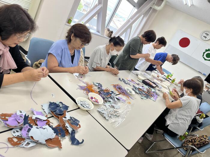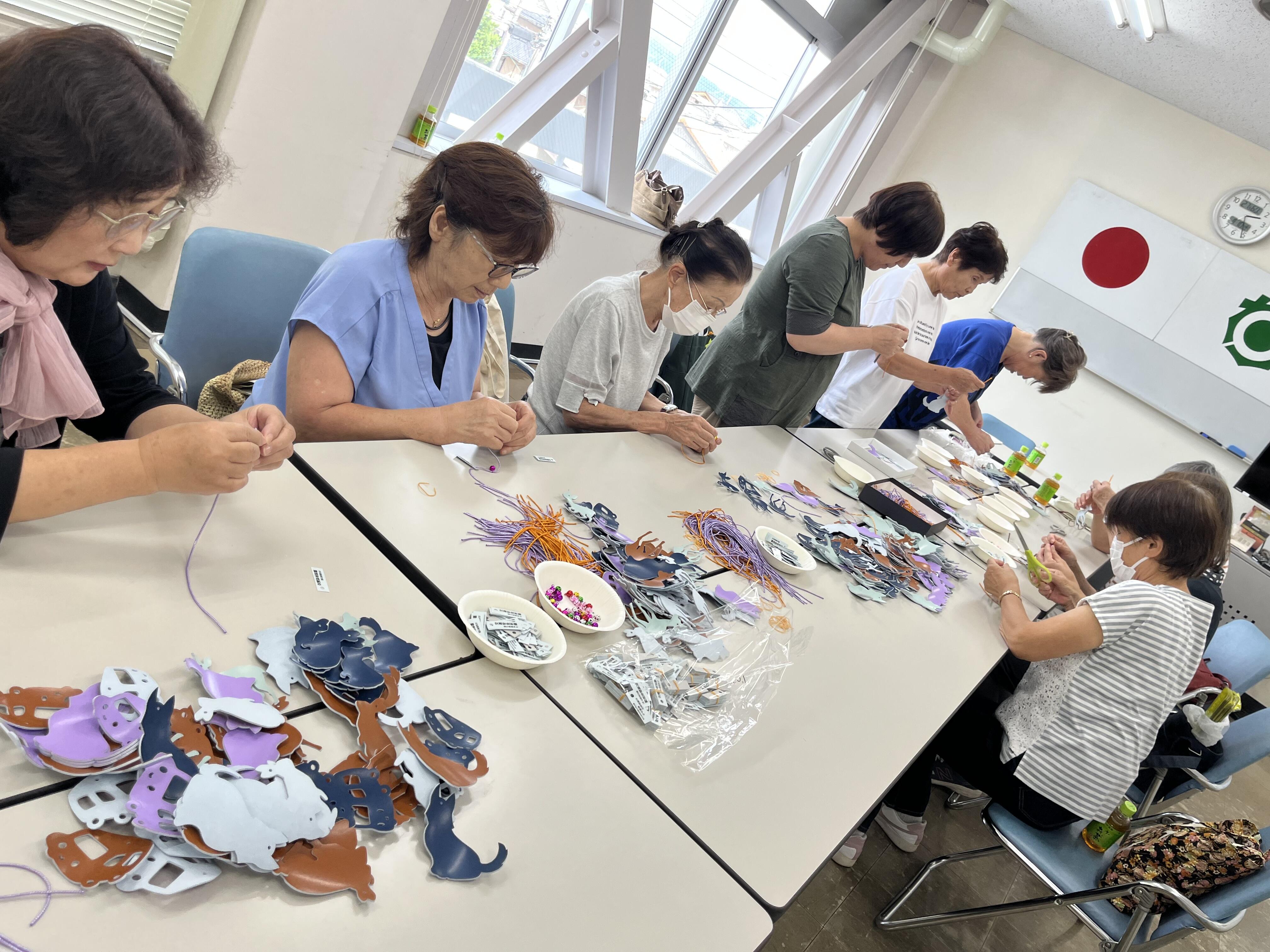 オランダ秋祭り等で配布する交通安全マスコットを手作りする母の会