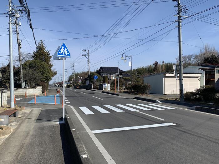 町道笠石・鏡田線(旧国道)に横断歩道が設置されました