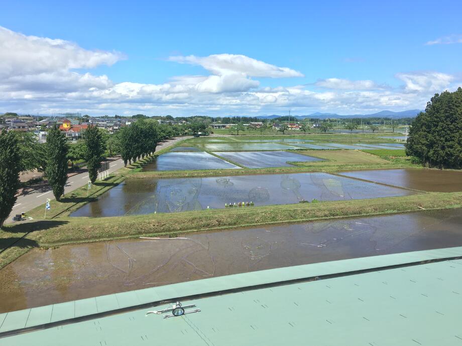 【6月14日撮影】本日田んぼに雲が反射して映りこむほどの快晴です!昨日から一般公開がスタートしました!(観覧者数 437名 6月14日現在)