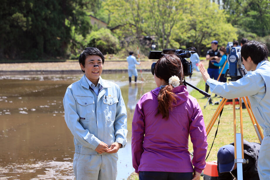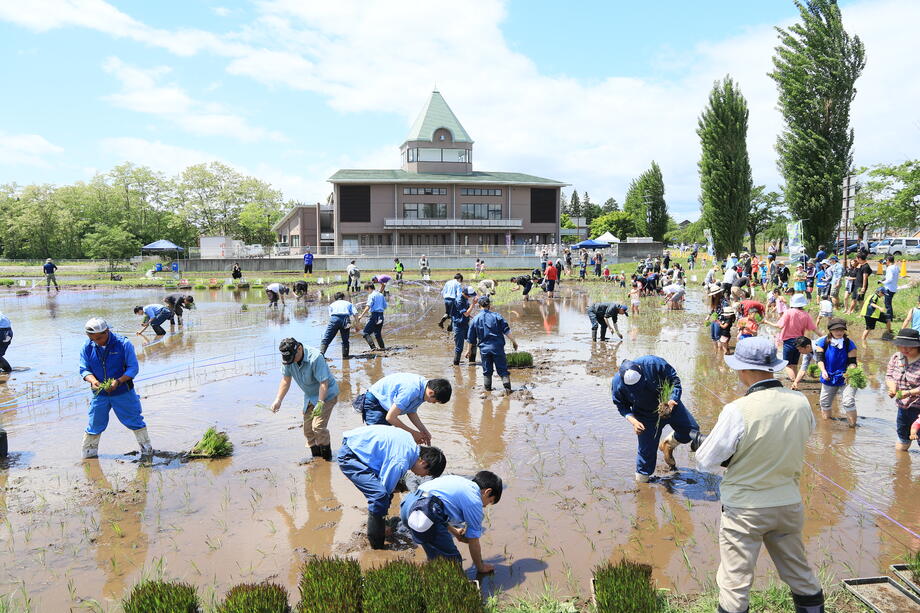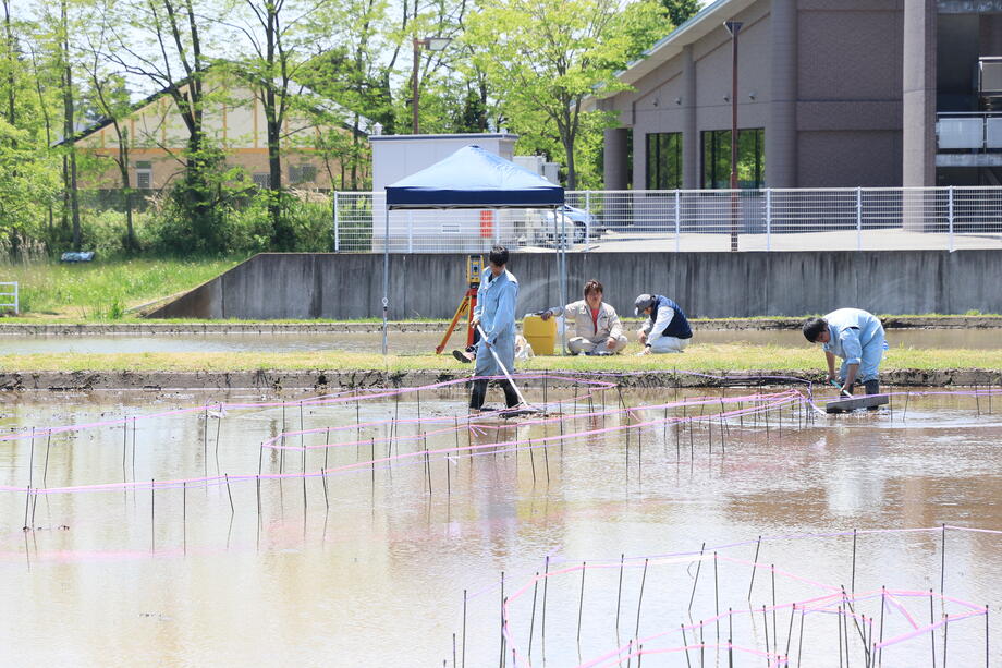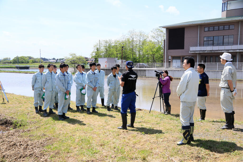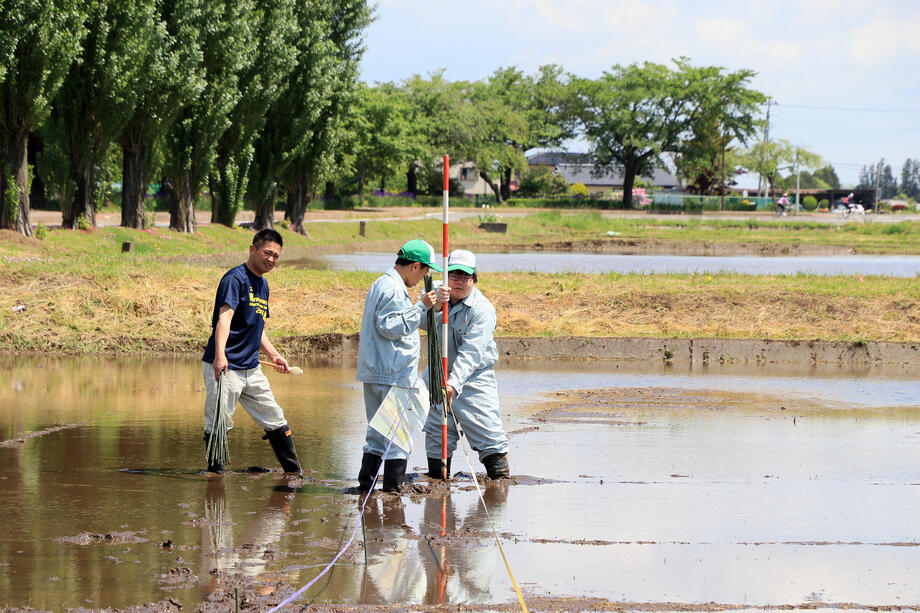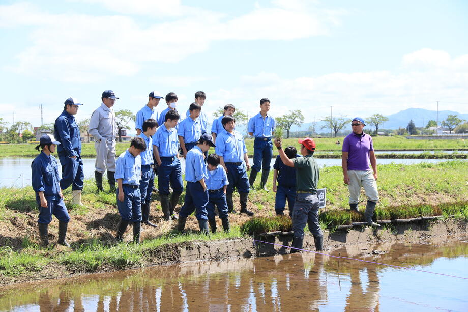 岩瀬農業高校生物生産科の生徒です。細かい部分である「お姫様の顔」を中心に素晴らしい田植え技術でした。