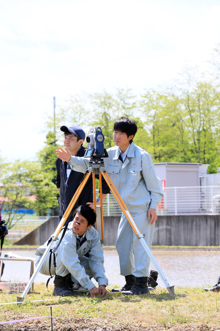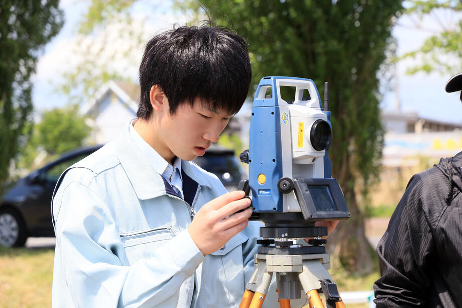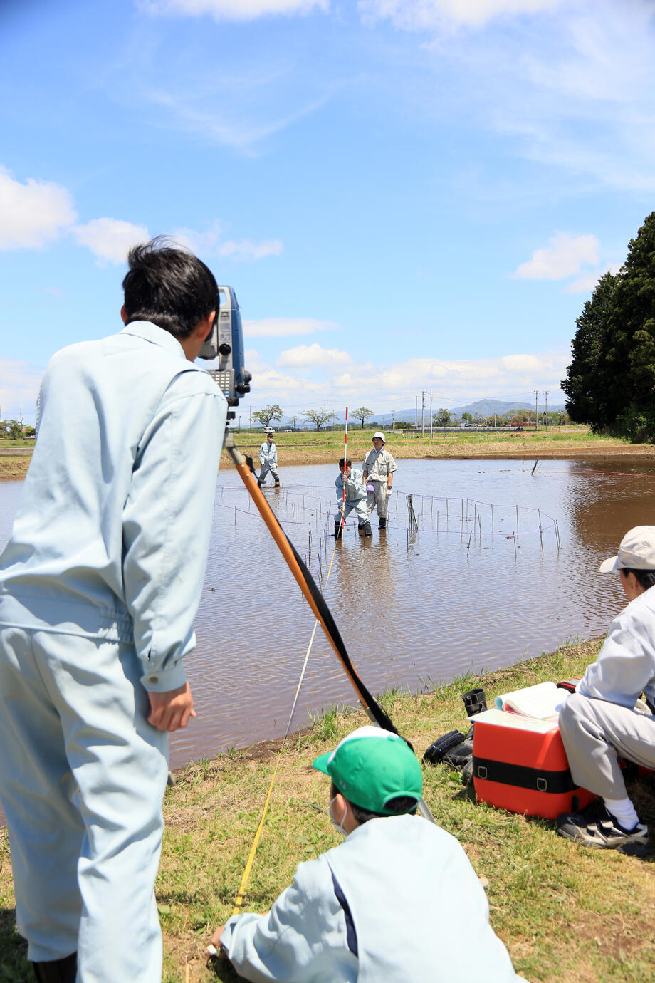 岩瀬農業高校環境工学科の生徒の皆さんによる測量作業です。