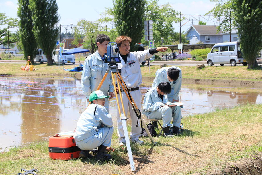 建設業組合の測量士の方に指導をいただきながら、さらに技術を磨きます。