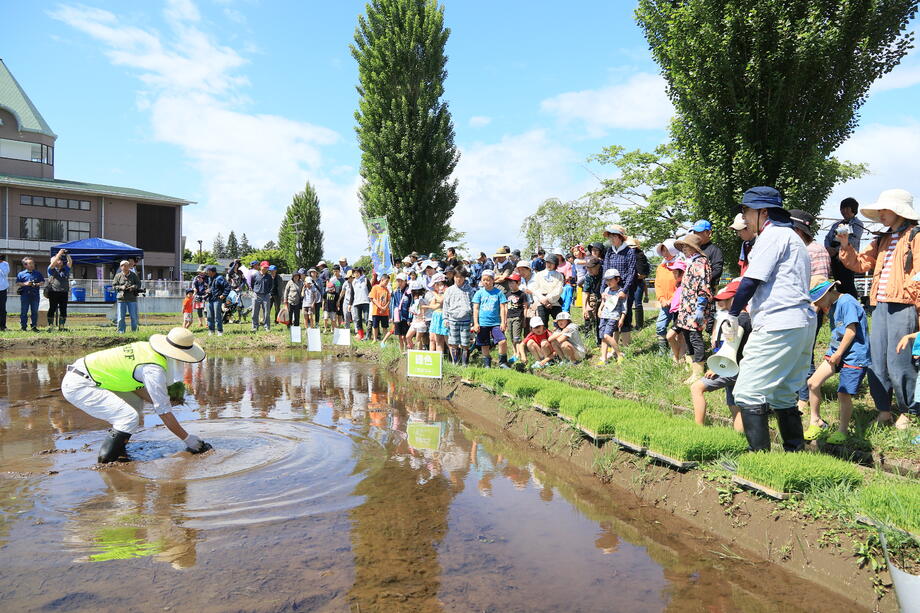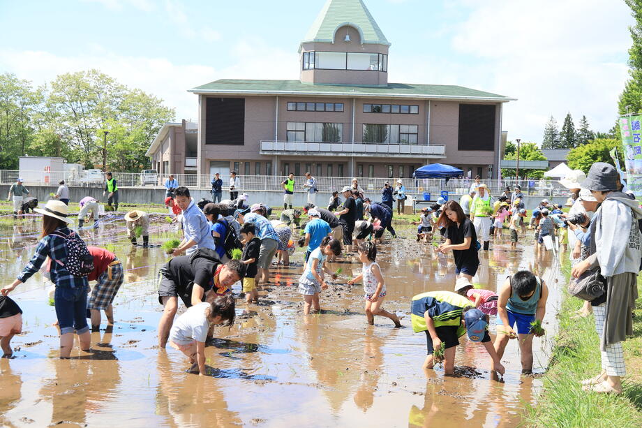 子供たちも田んぼに足を入れることが慣れてきた辺りで田植えが終了します。