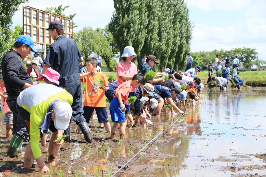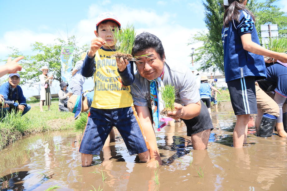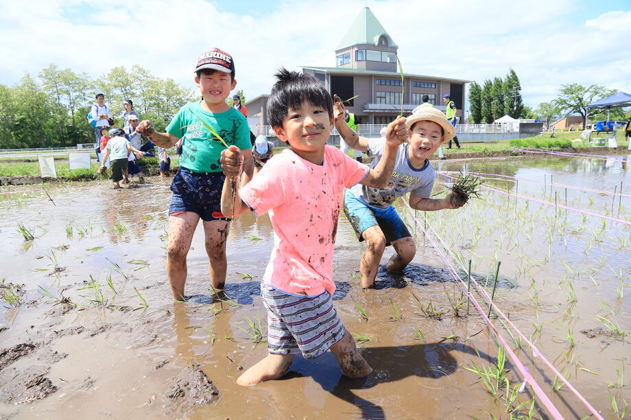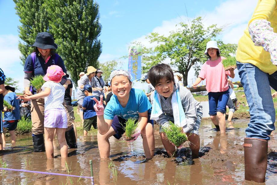 子供たちは笑顔で田植えを楽しんでいますね。
