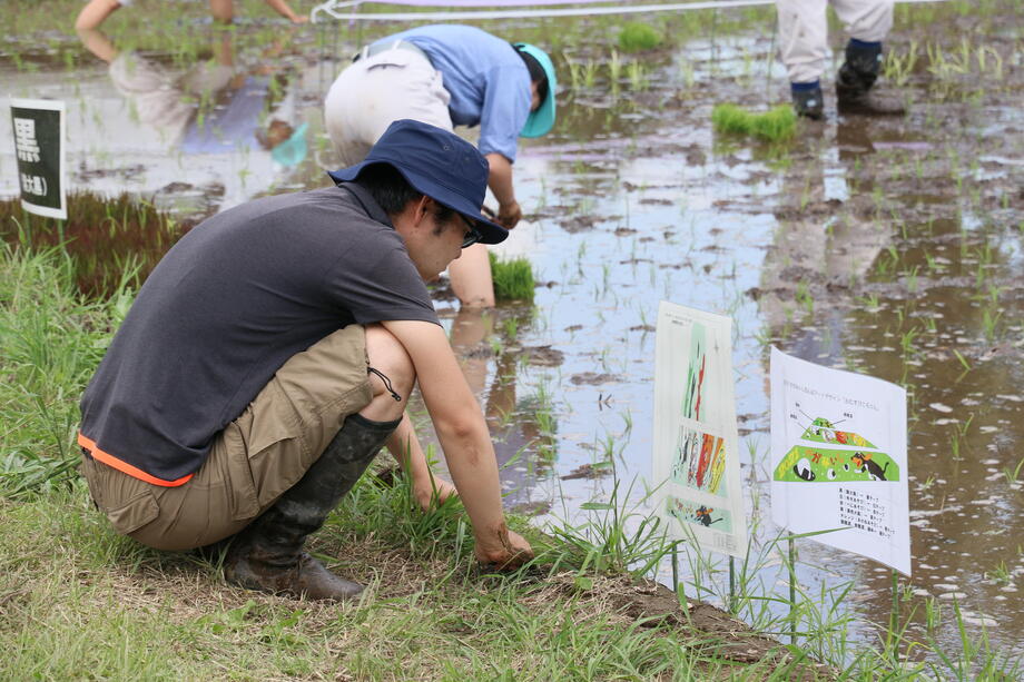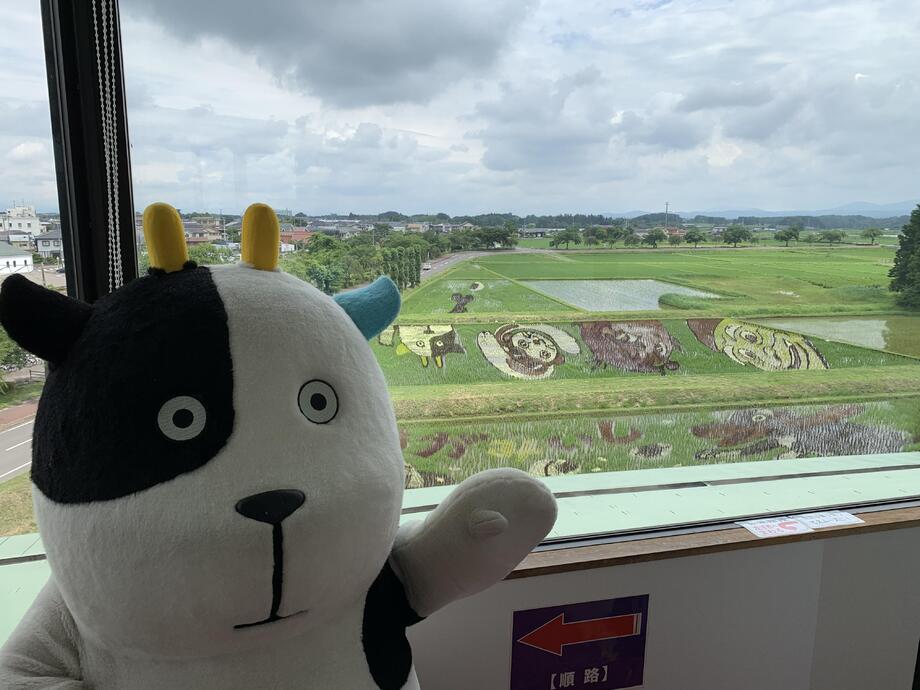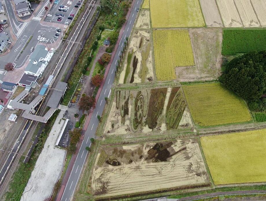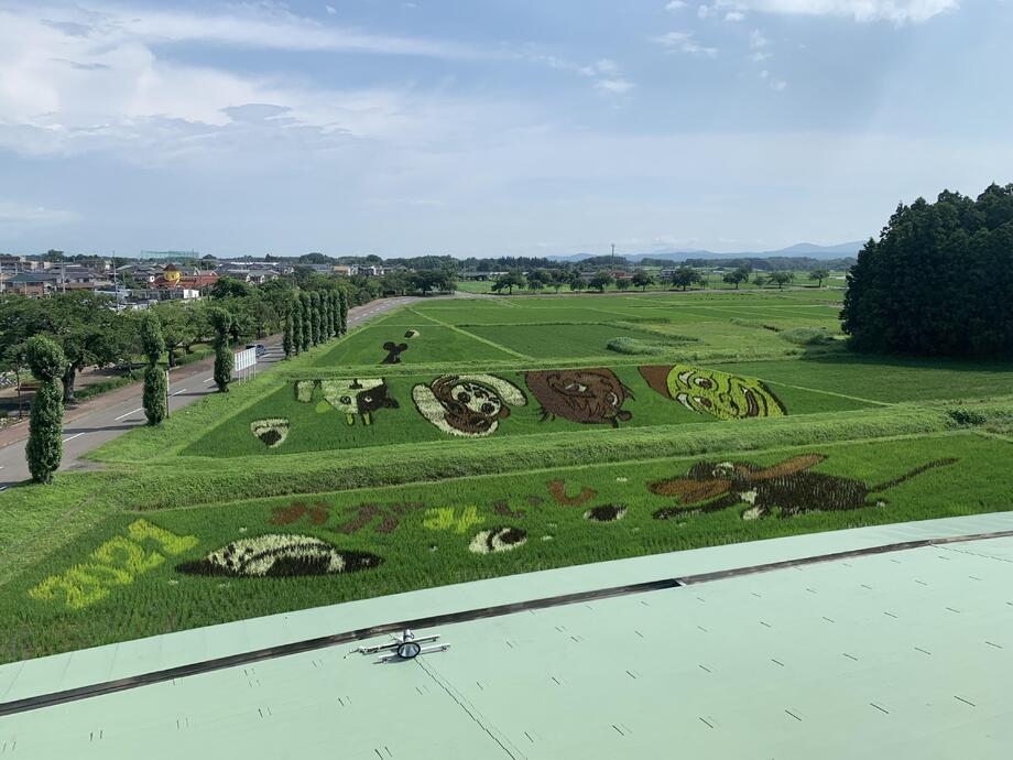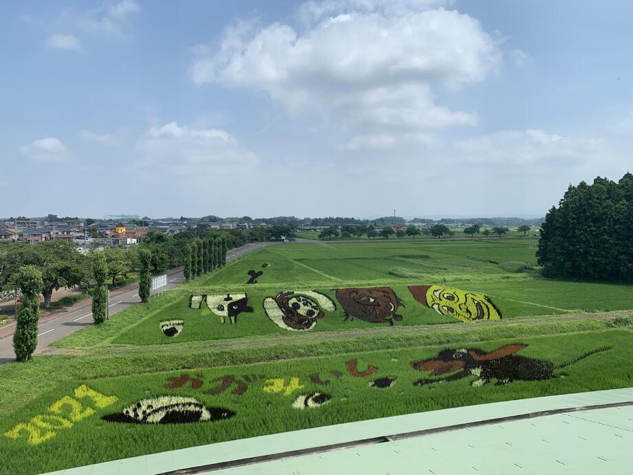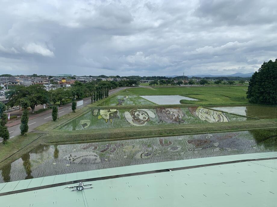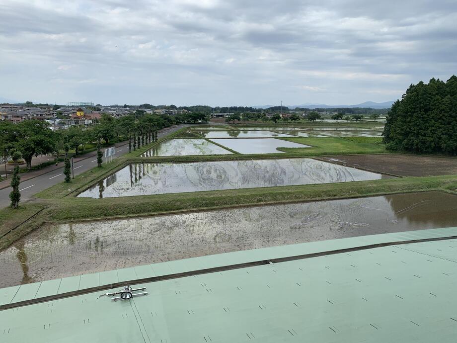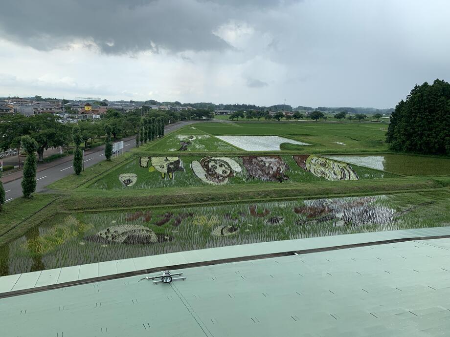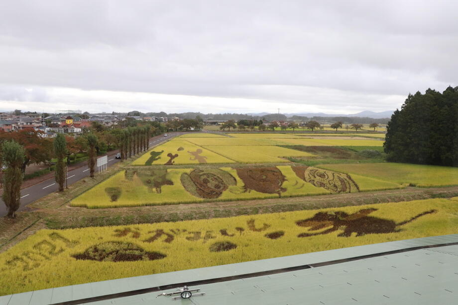 また、今回の田んぼアートには、新型コロナウイルス感染症の収束が見えない中で、「にぎやか」、「元気」や「楽しさ」を伝えたいとの思いから、「おむすびころりん」の中に空想の世界観もあえて表現しております。