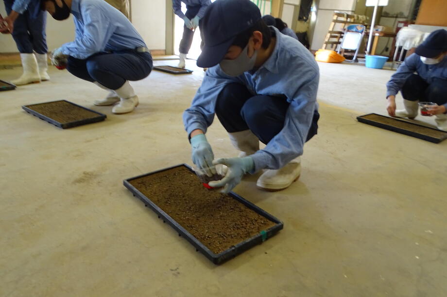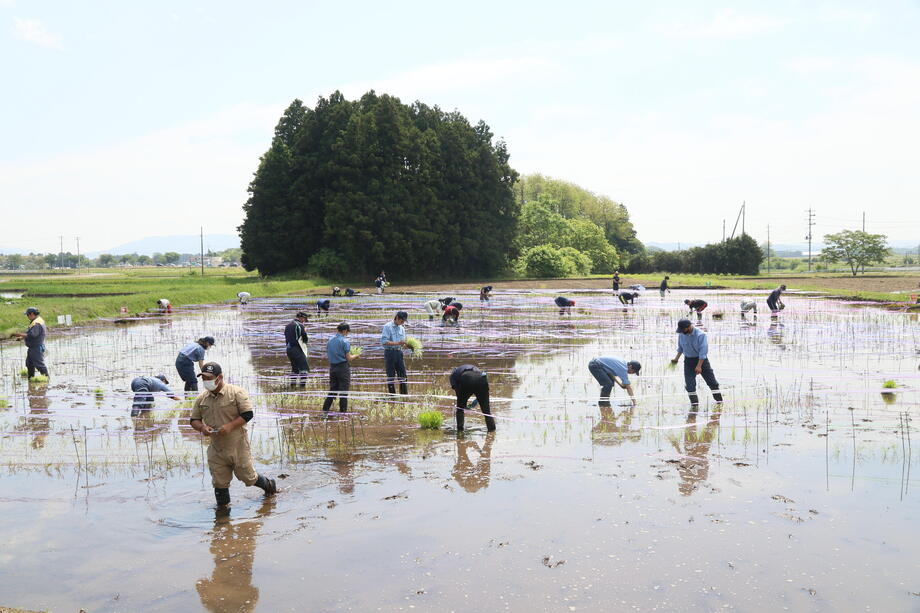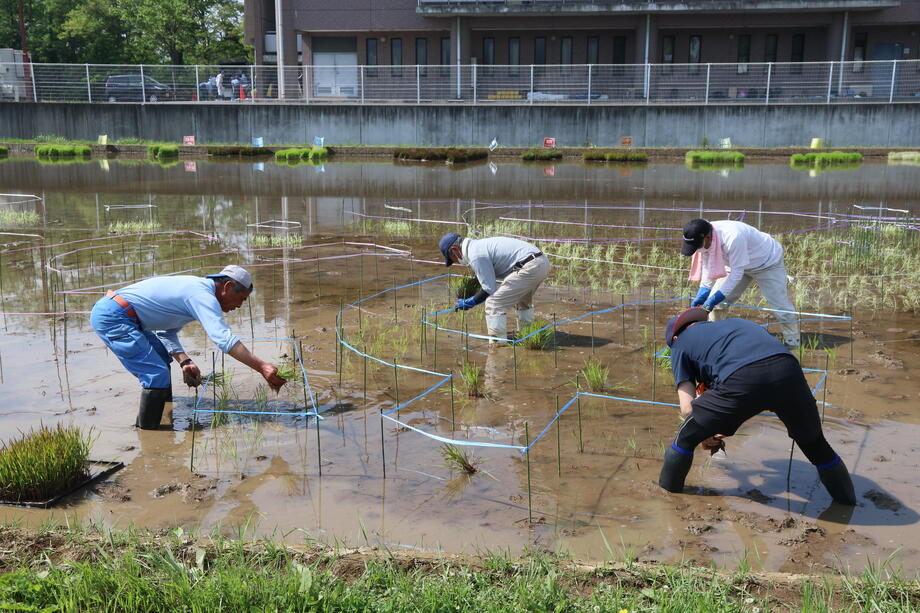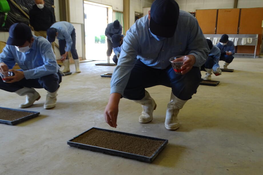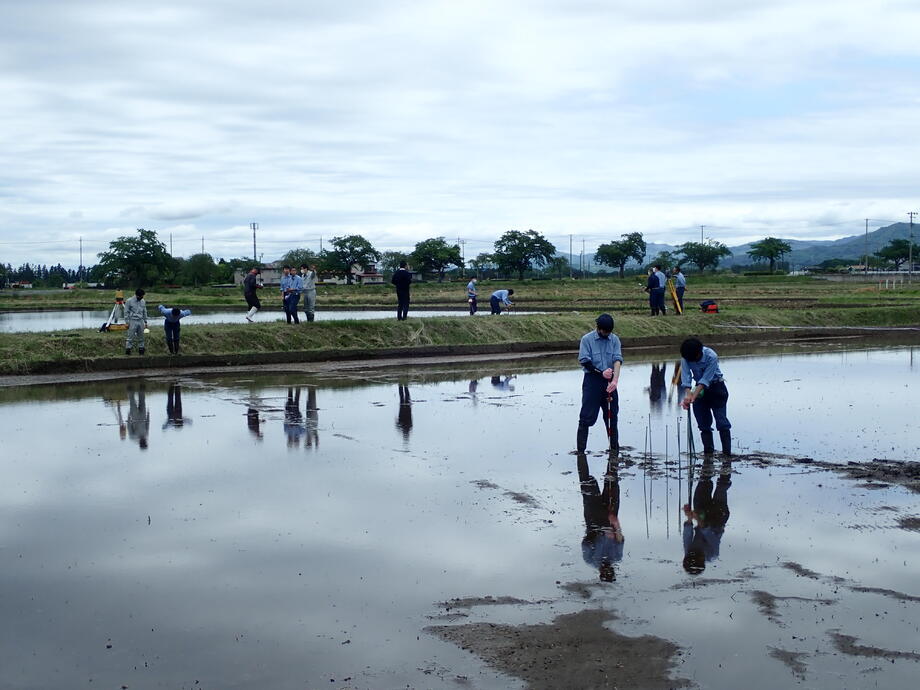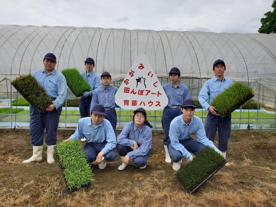 今年も種まき、育苗、絵の下書きとなる測量作業、田植えと岩瀬農業高校の生物生産科作物専攻班と環境工学科測量専攻班に全面的な協力を得ています。