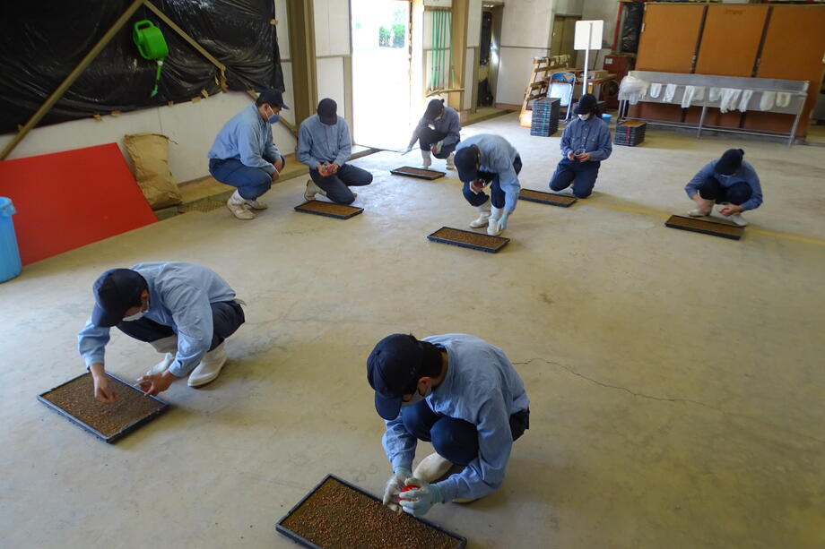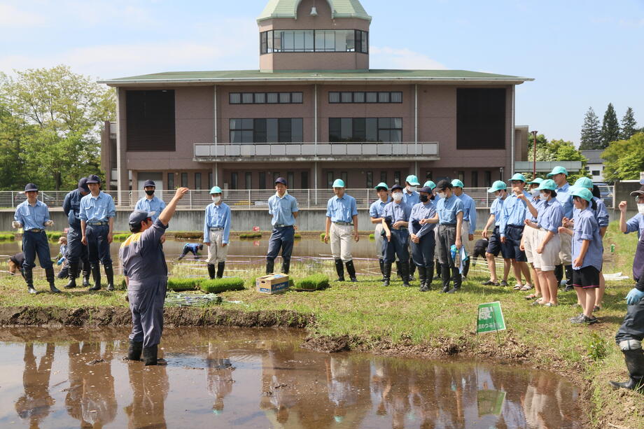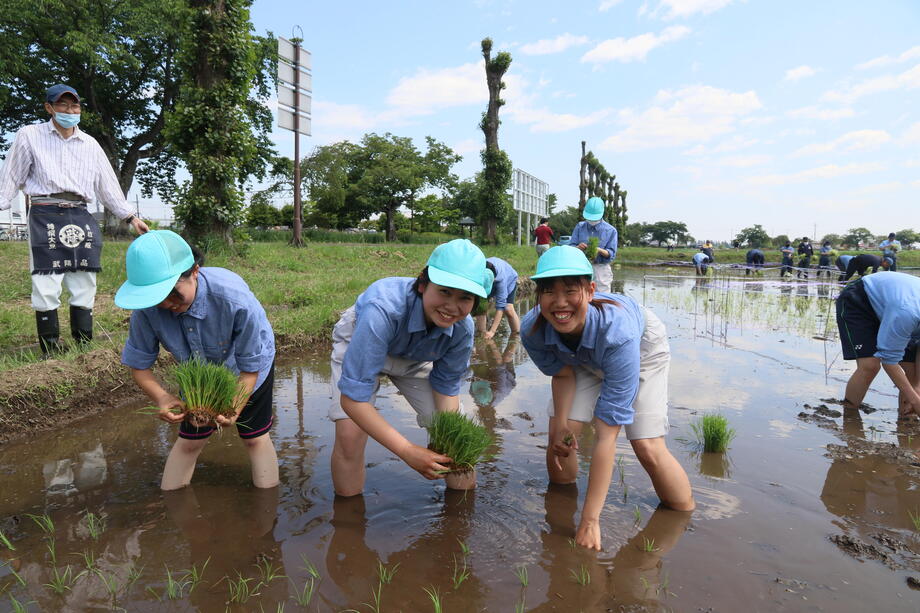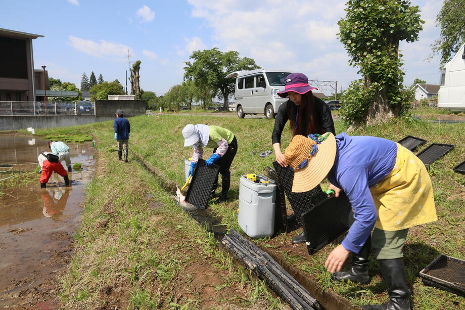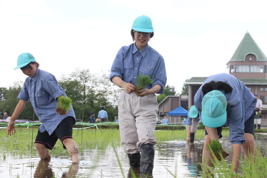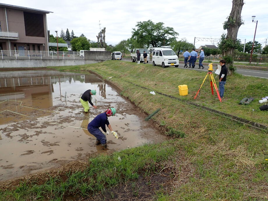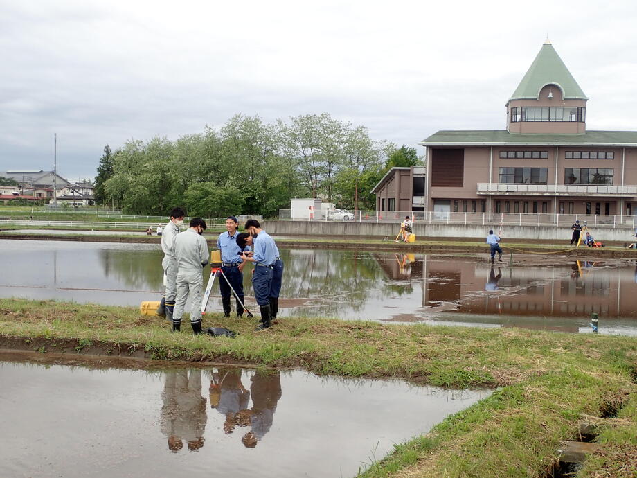 今年も種まき、育苗、絵の下書きとなる測量作業、田植えと岩瀬農業高校の生物生産科作物専攻班と環境工学科測量専攻班に全面的な協力を得ています。