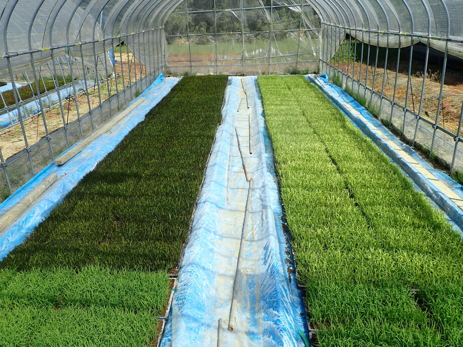 今年も田んぼのキャンパスの絵具となる苗を6色9種類使用しています。